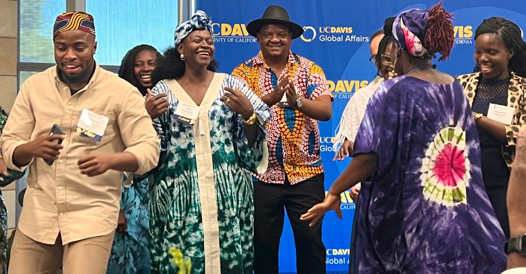 The Friday reception was a very interesting, worthwhile two hours where we ate some typical African fare (rice, potatoes, cabbage, a chicken dish and spongy Ethiopian bread — interesting, all yellow); heard from officials, planners, sponsors and the fellows themselves. There was drumming, dancing and a lot of presentations. Pleased to hear Jim later say he really enjoyed it all and was up for hosting again next year. I’ll include some of those pics, as well.
