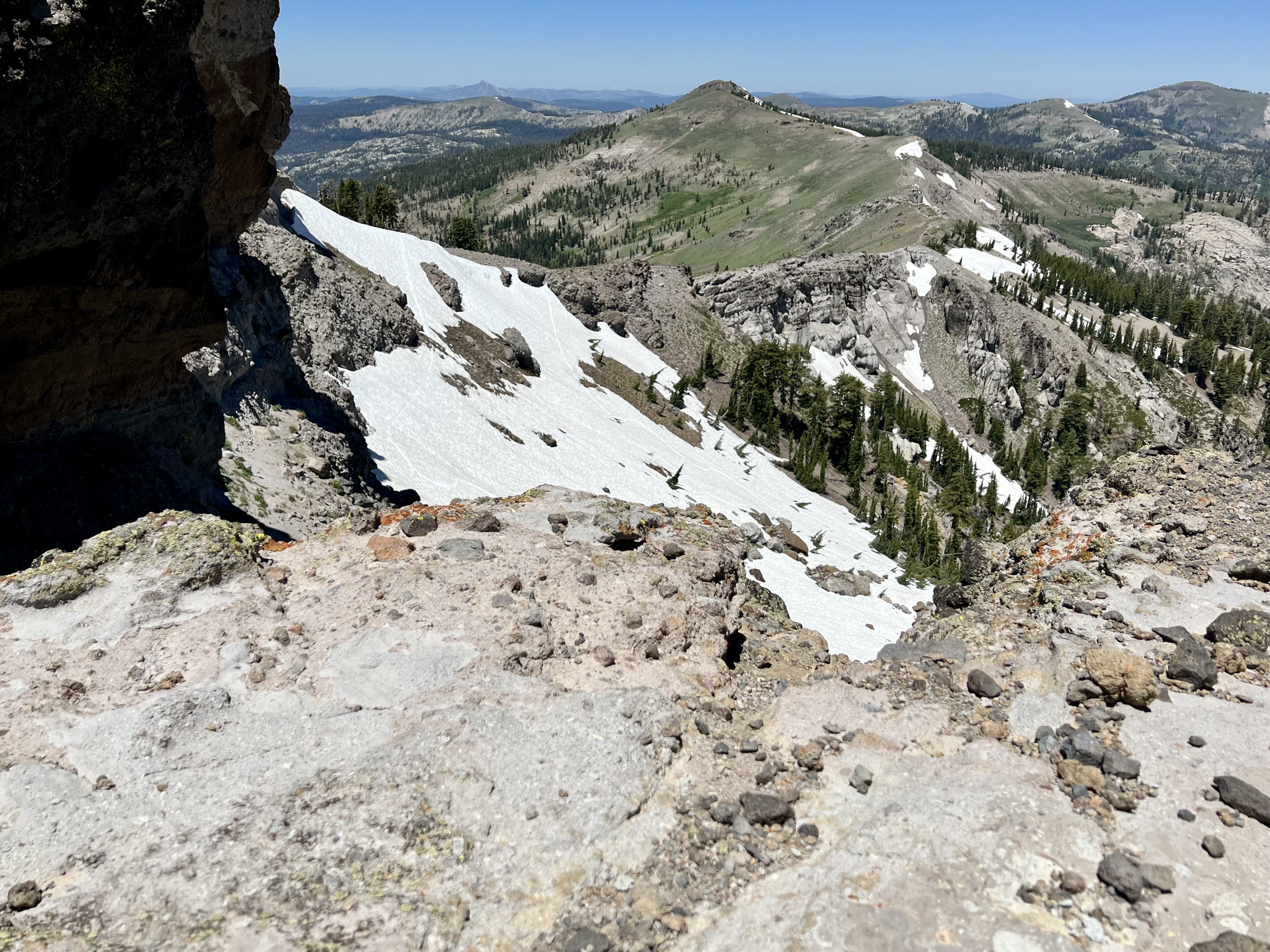 This is down on that ridge (the one right of Jim’s head in a picture above), looking back at the Castle Peak ridge.
