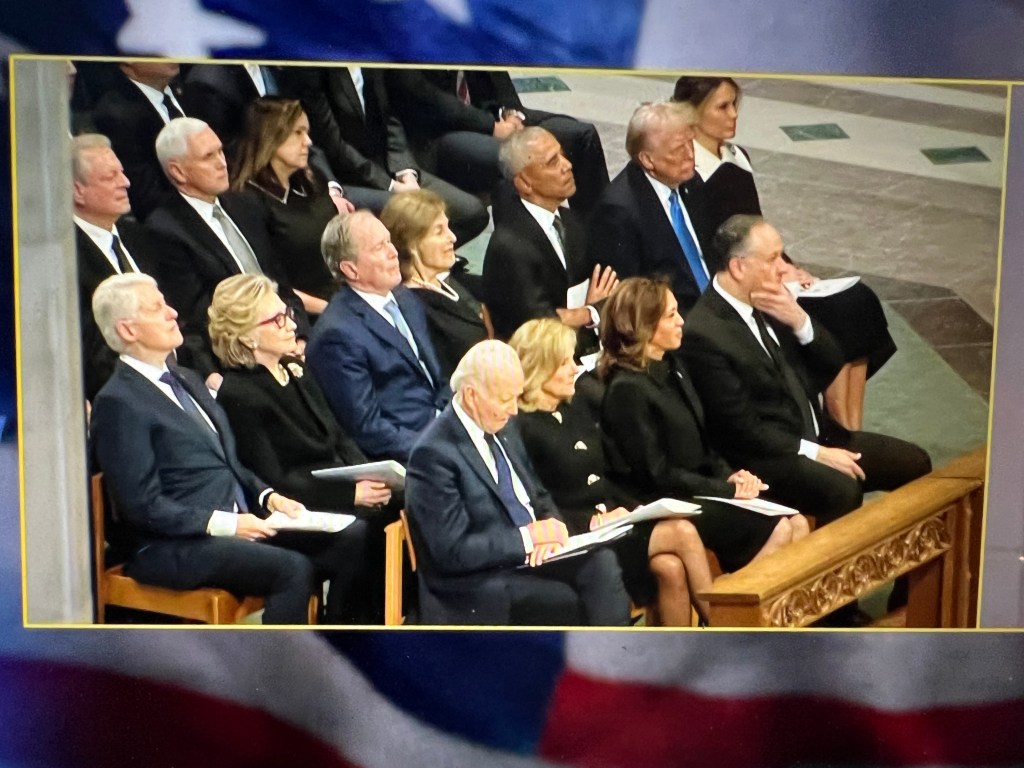 And wow, what a screen shot… five US presidents in one place, plus four former vice presidents (Dan Quayle is out of the frame) and assorted spouses. One was definitely not like the others.