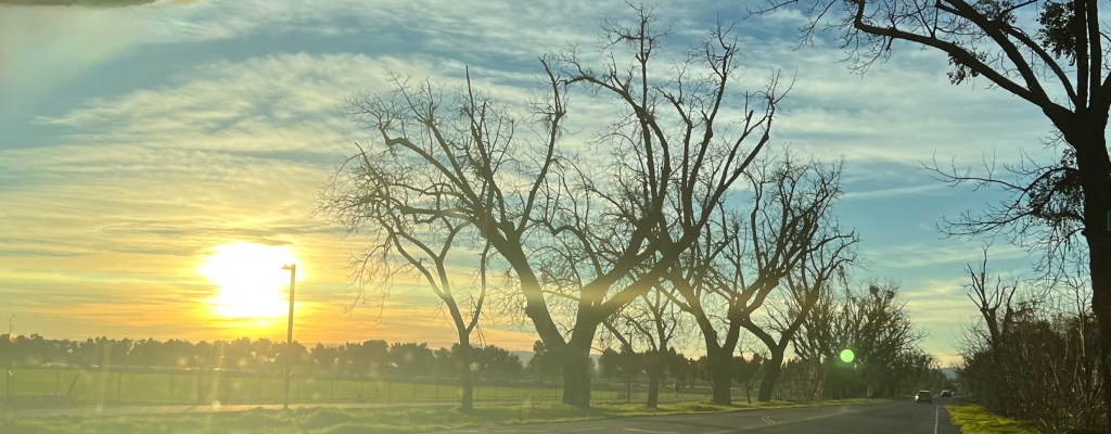 Was driving home last night (after a great massage) and caught this view out the passenger window, looking due West on Russell Boulevard toward Winters. I really miss the canopy of walnut trees that used to characterize this road into Davis.. but without the trees, you get a pretty nice view of the sun setting over the farms.