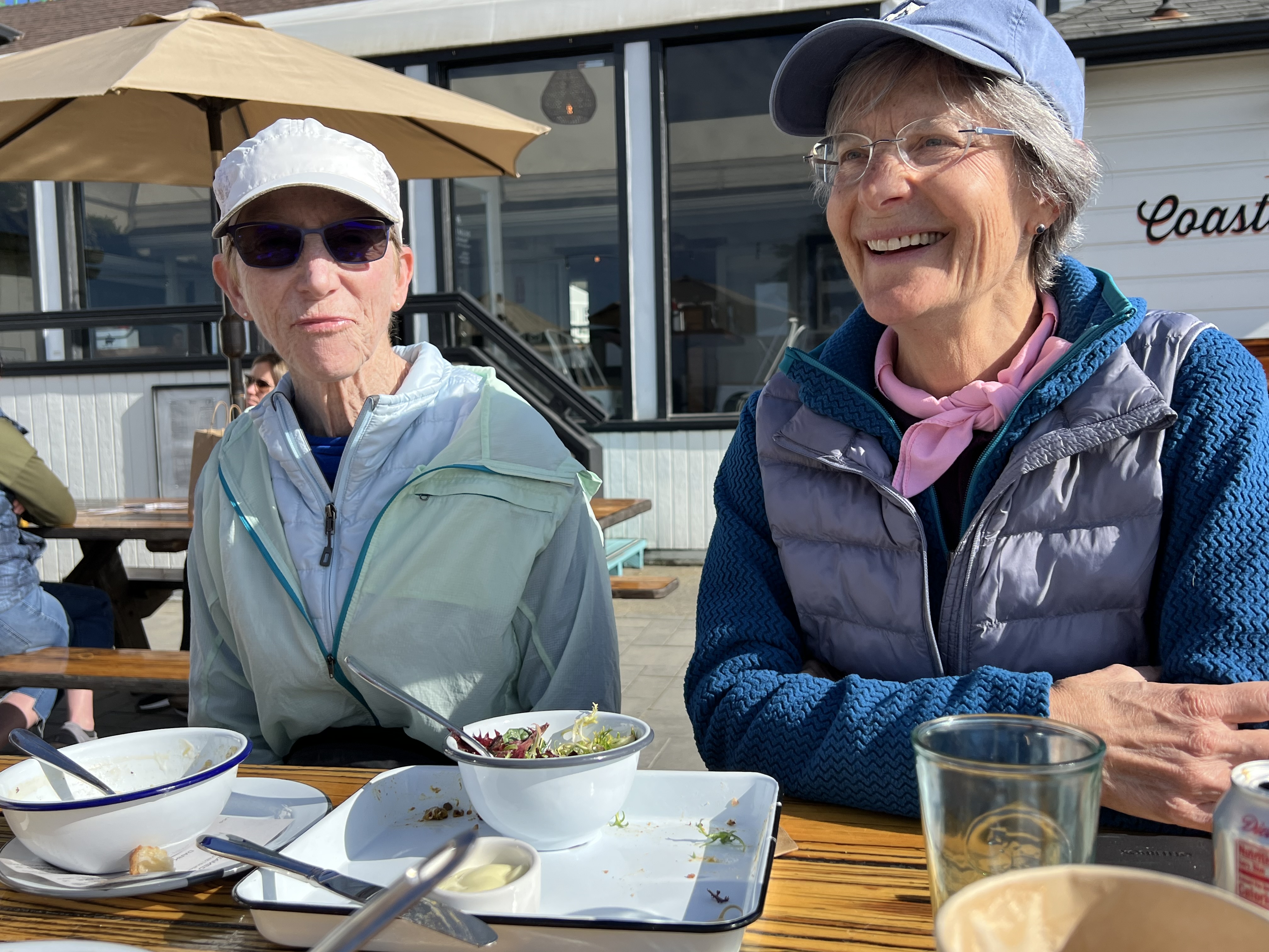 Claire and Lisa — who are spending a couple weeks housesitting in Santa Rosa — came over and we met them for lunch down at the cafe and then took them for a walk around the so-called village.