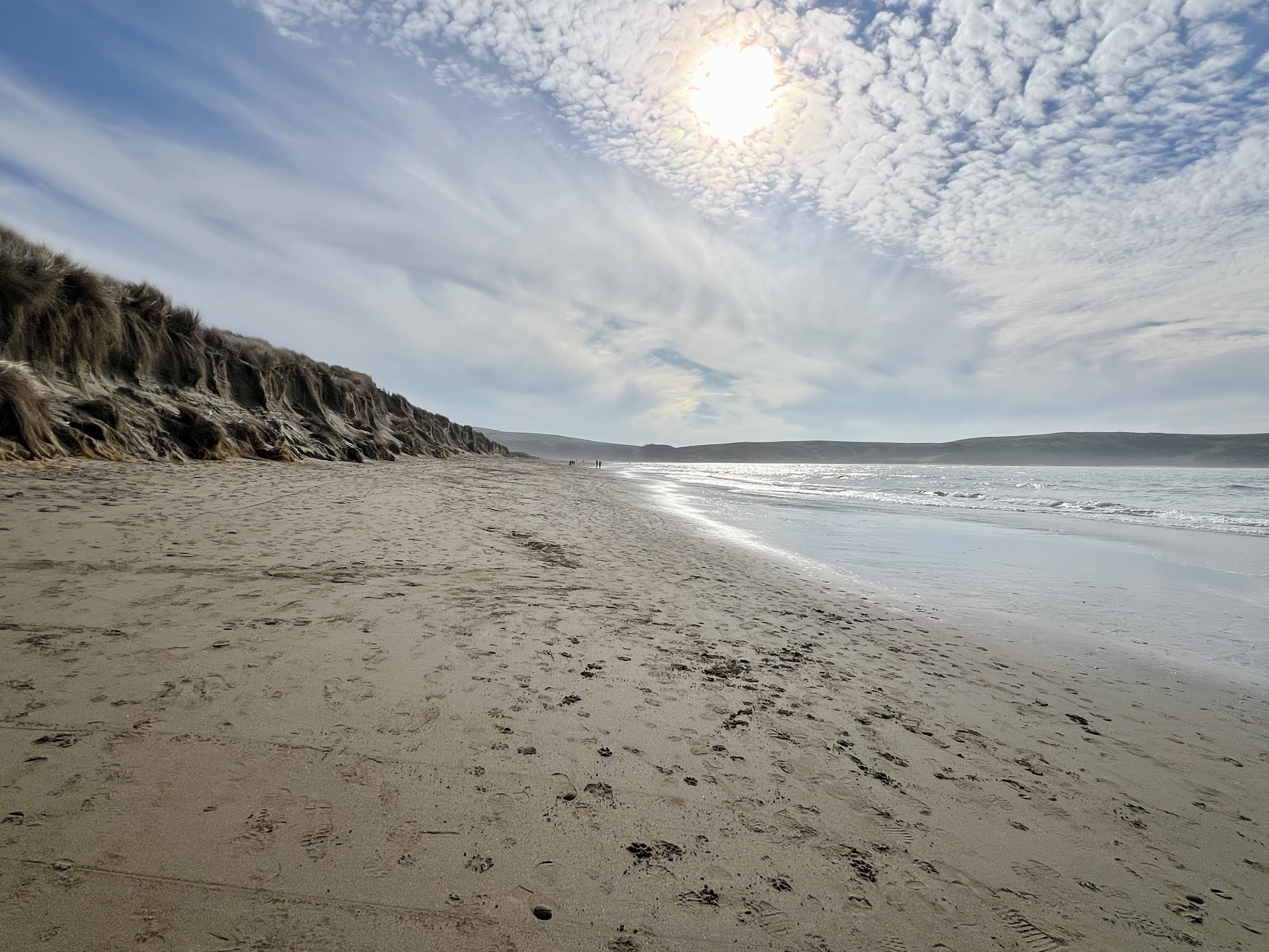 The end of the beach proper, looking across Tomales Bay at the Pt. Reyes National Seashore and the long skinny peninsula that we’ve hiked numerous times (farthest point is Tomales Point, off to the right in this shot):