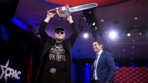 This clown in black tee shirt and coat, ball cap, heavy gold chain and sunglasses who’s on god knows what , wielding a chain saw in front of frothing, maniacal crowd at CPAC, pants-wetting giddy about all the cuts he’s making to the federal government and all the career civil servants he’s firing.