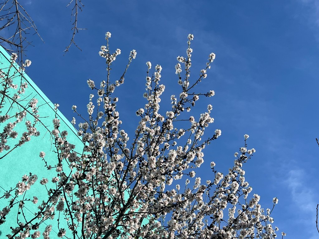 As I walked out of the coop this afternoon, this blooming tree drew my gaze upward. Glad it did.
