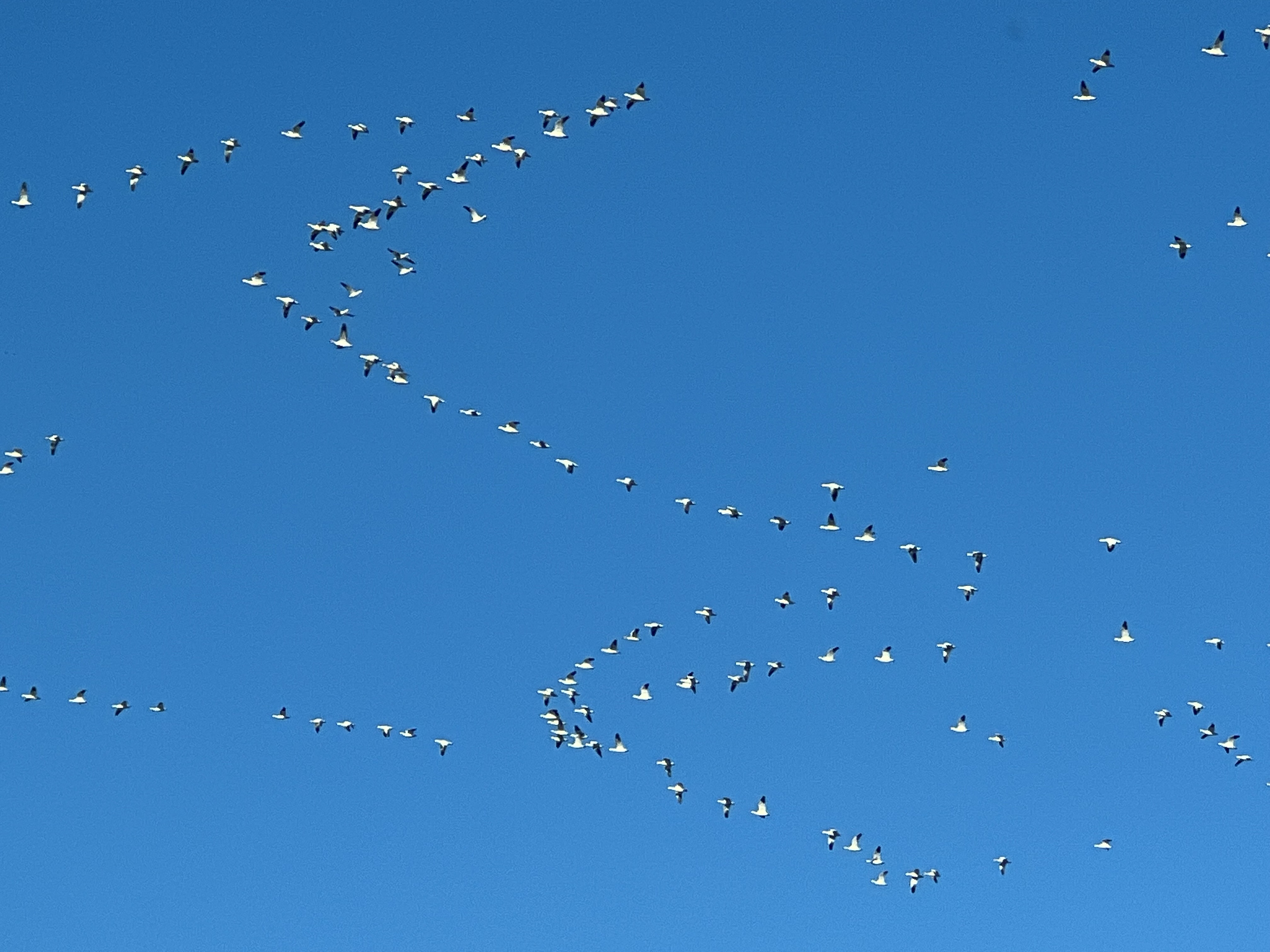 First, as we crossed the causeway, the skies were just thick in migrating, honking geese heading back North.. that stream of birds filled the flyway and kept coming and coming and coming … it was a remarkable site.