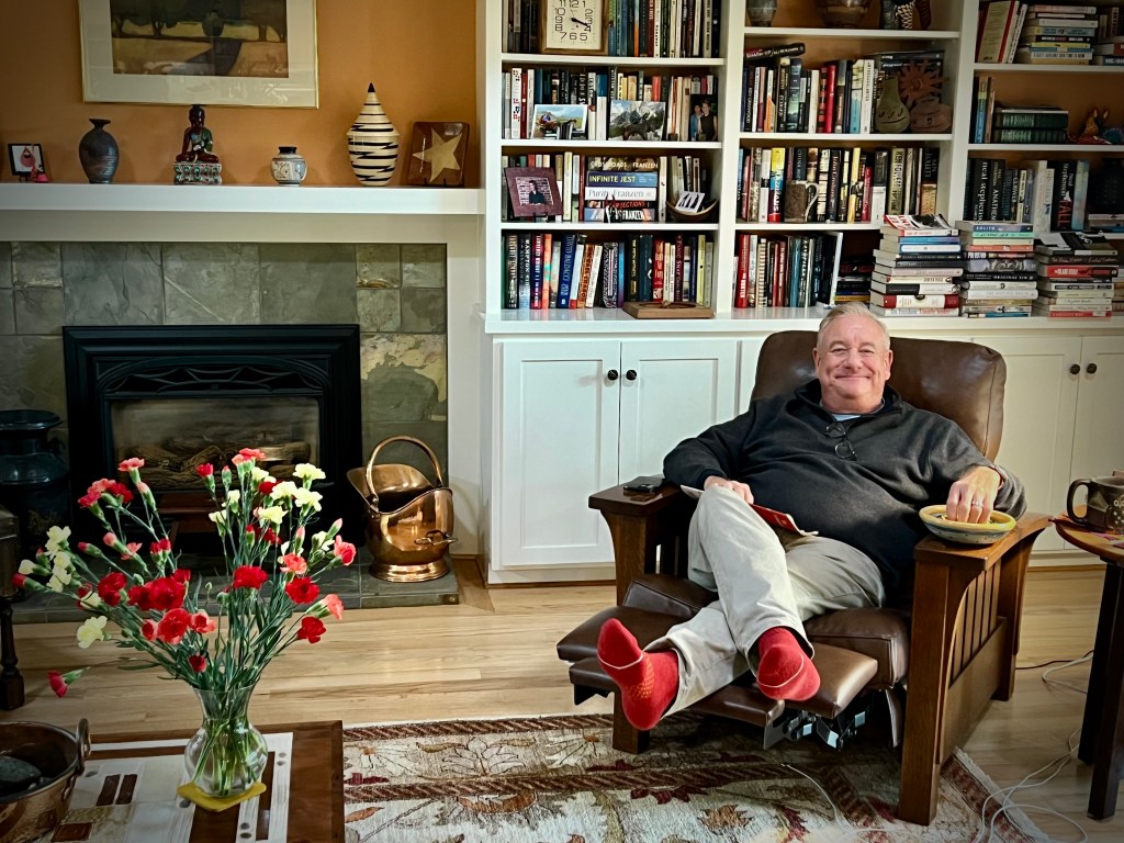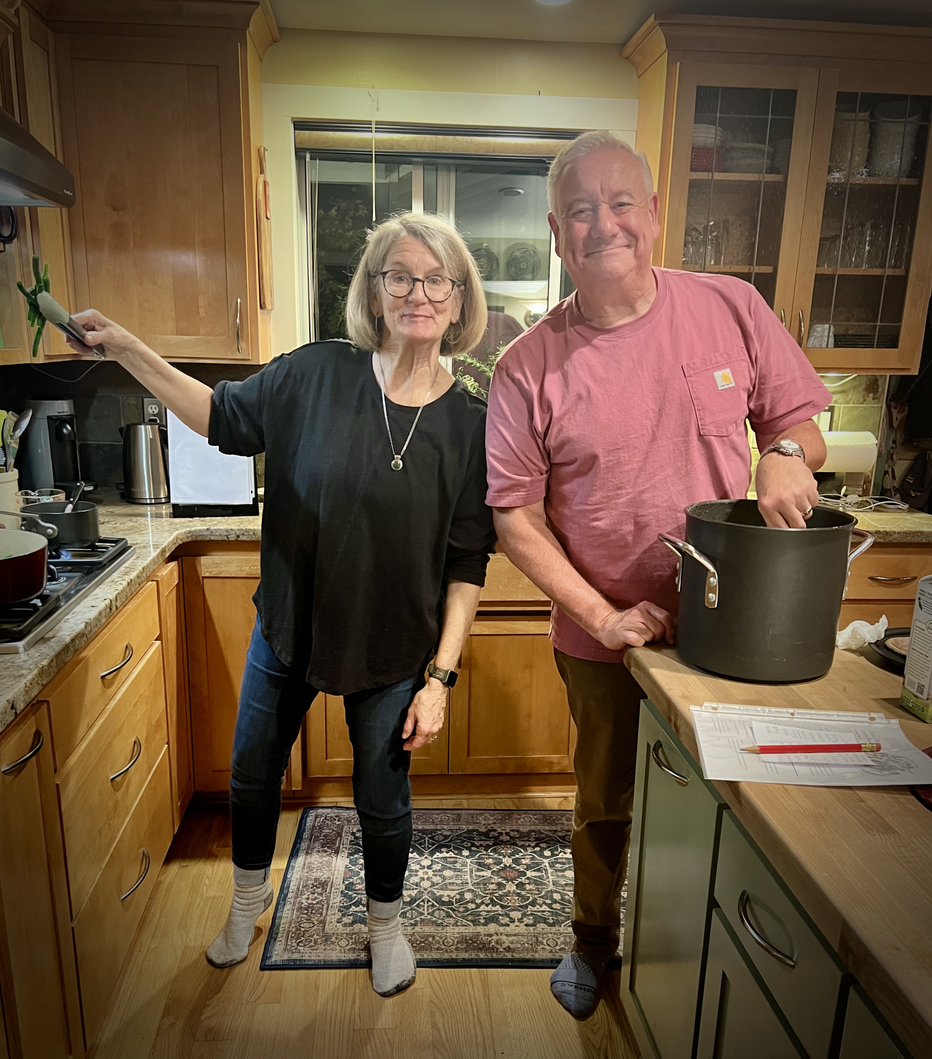 I will say this about Chris: Since mom started going downhill .. (heart surgery in 2009 and then 8 more years of pretty challenging health), Chris has been on the scene. He’s always been on the scene (if unconventionally and on his own terms), but he really stepped up and became ever present in those years. The importance of family really clicked in for him and we noticed, and appreciated it. He has become somewhat of a family spark plug, a Jay whisperer, someone who seems not to hold grudges and floats among all the difficult family members without the complicated burdens some of us can’t seem to shed. After mom died in 2017, he remained family-committed, in fact his urgency to be a regular part of the clan increased. He has become sort of the spokesperson for tradition, and upholding our parents’ legacy (a term he uses a lot with loads of sentimentality) now that they are both gone. He had his own health scare in 2020 with a heart attack (while surfing, of all things), which intensified his need for connection. Pam’s coming on the scene (I want to say sometime around 2019?) has formalized his role in the family. She is the consummate in-law (though they aren’t officially married just yet), ensuring that not only do they show up, but they do it with a hot dish (or two), a bottle of wine, flowers… and then help clean up. She has introduced social protocols to his world and I think he actually likes it.