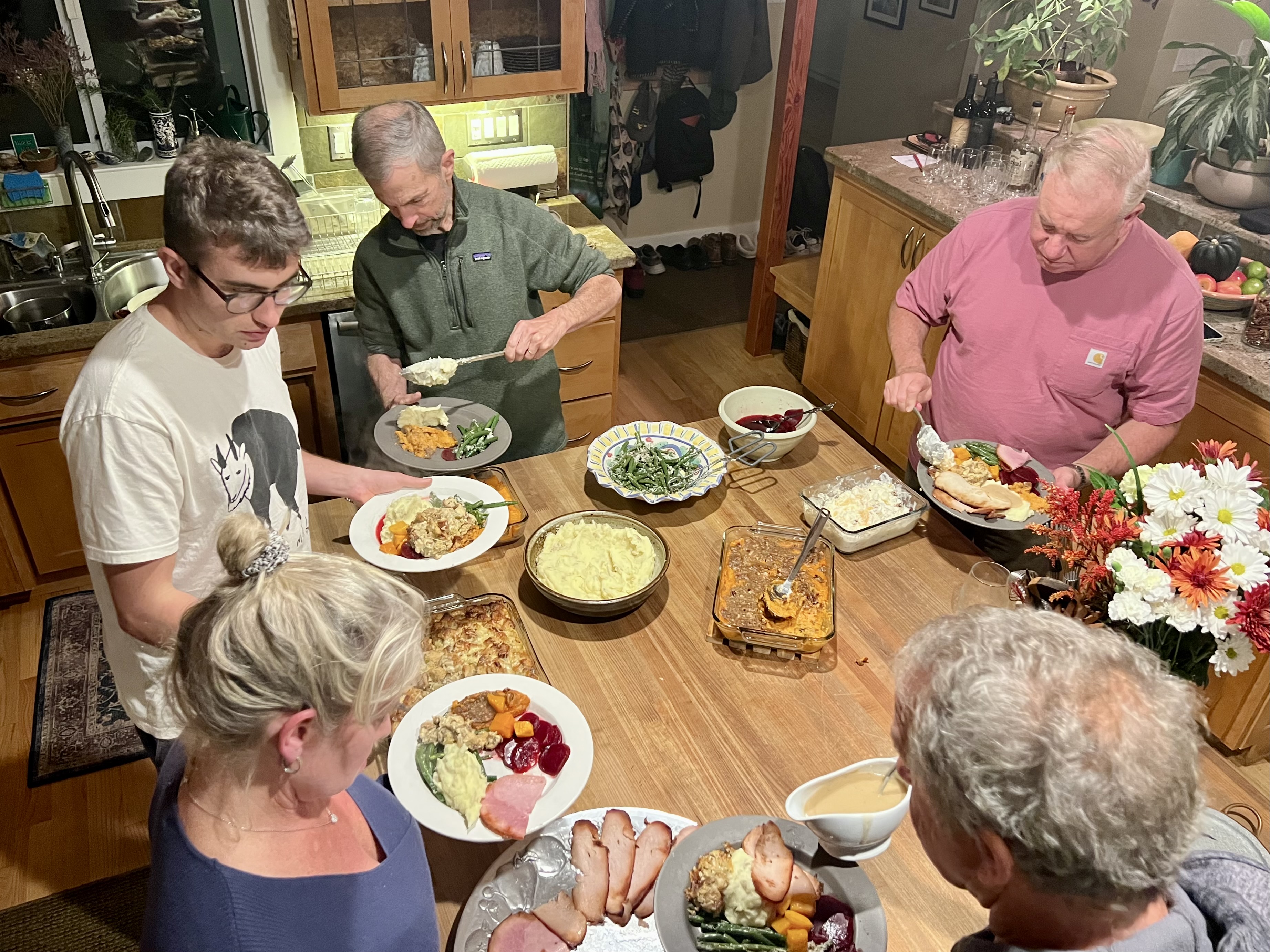 I’m just amazed and grateful they agree to come all the way up here every year for Thanksgiving. He thanks ME for being the one to make it all happen. His toasts about us kids needing to hang together because that’s what mom and dad would want are from the heart and emotionally delivered.