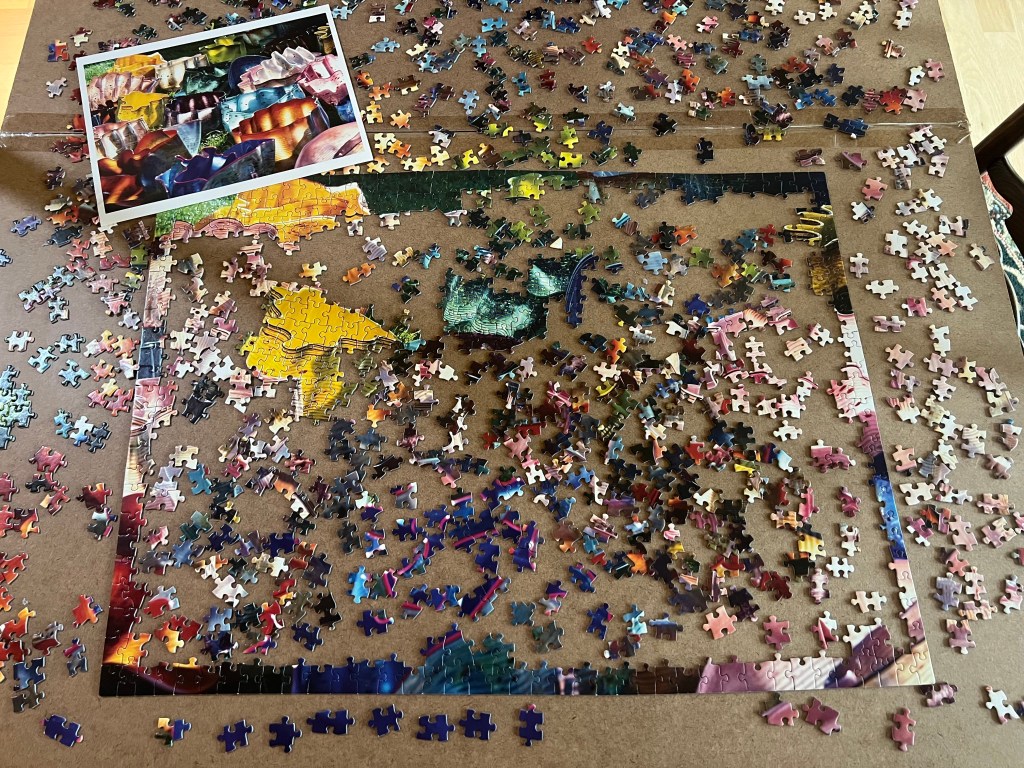 We set up a Chihuly jigsaw puzzle.. which proved to be tedious and difficult.. not sure I’ll finish it, but here’s Betsy’s and my start on the thing: