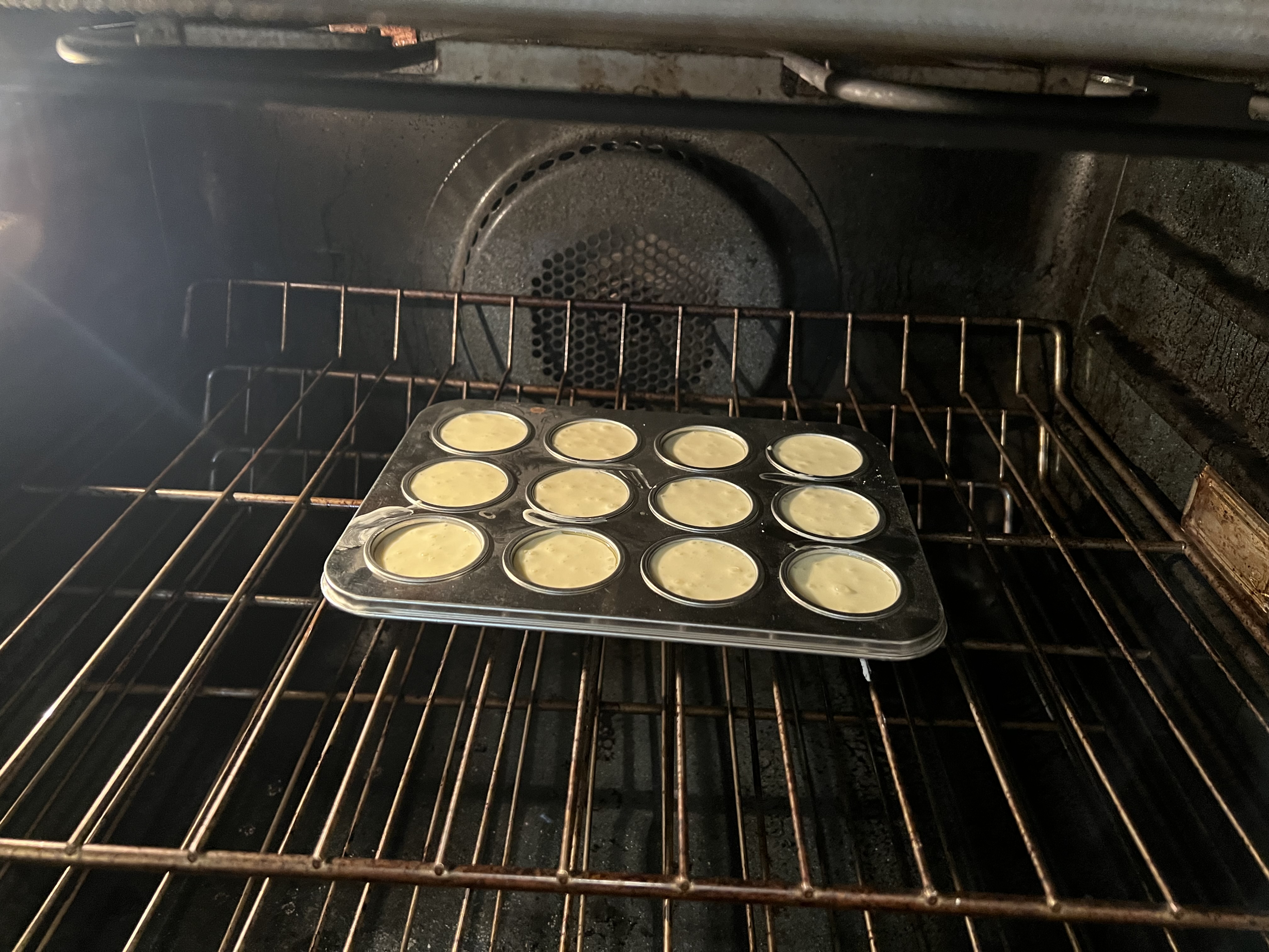 So easy.. put it all in a blender, then pour into an oiled mini muffin pan: