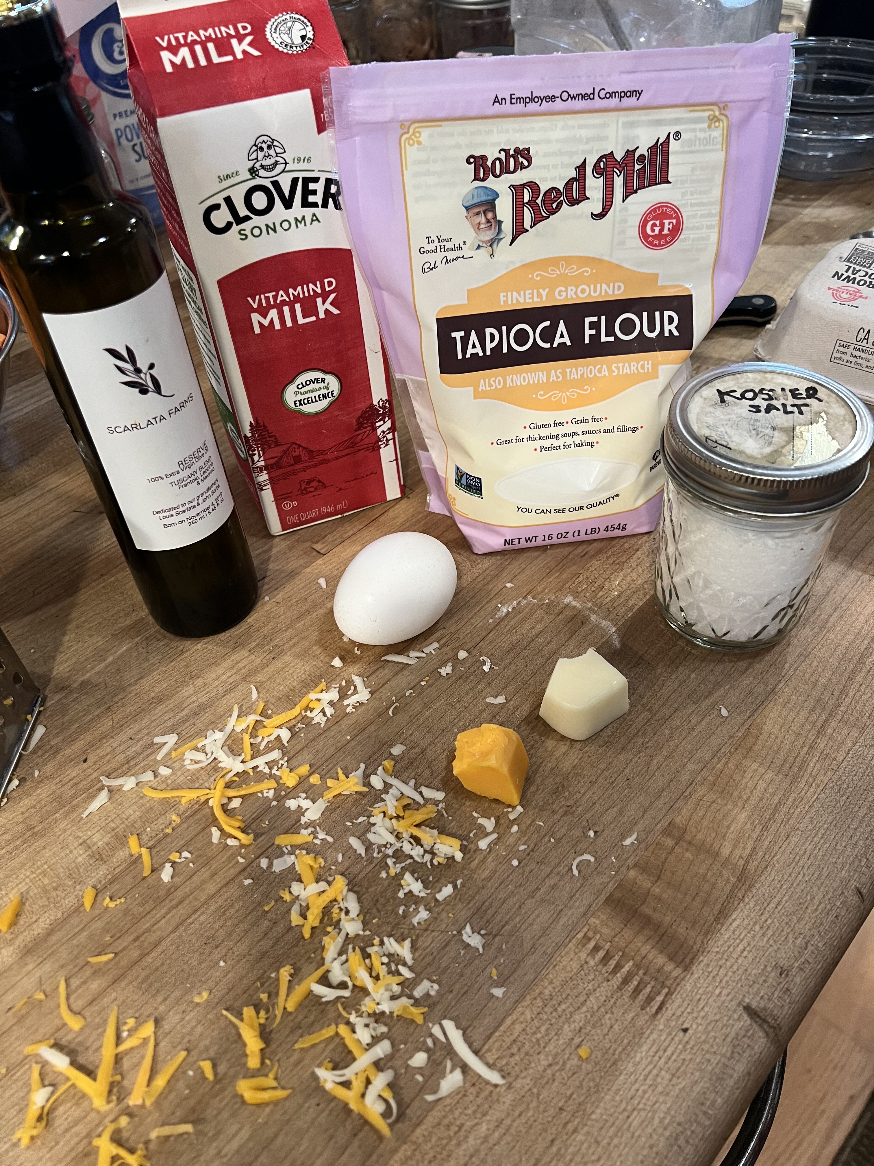 Threw the first batch out. The second came out okay-ish (under baked them). I might try them again. After all: cheese bread? It is a perfect food, deserving of perfection.