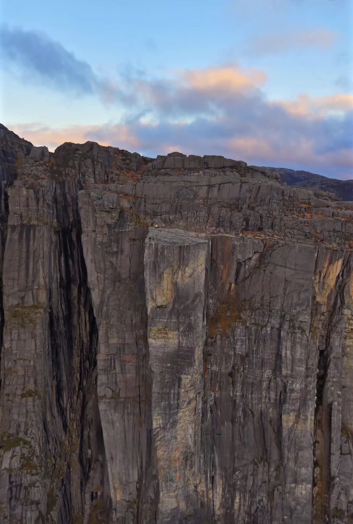 Here are two from a site called Spectacular Norway (not an exaggeration), of probably Norway’s most famous tourist spot, Preikestolen (Pulpit Rock), high above the Lysefjord (just 45 minutes from Leslie and Svein’s house):