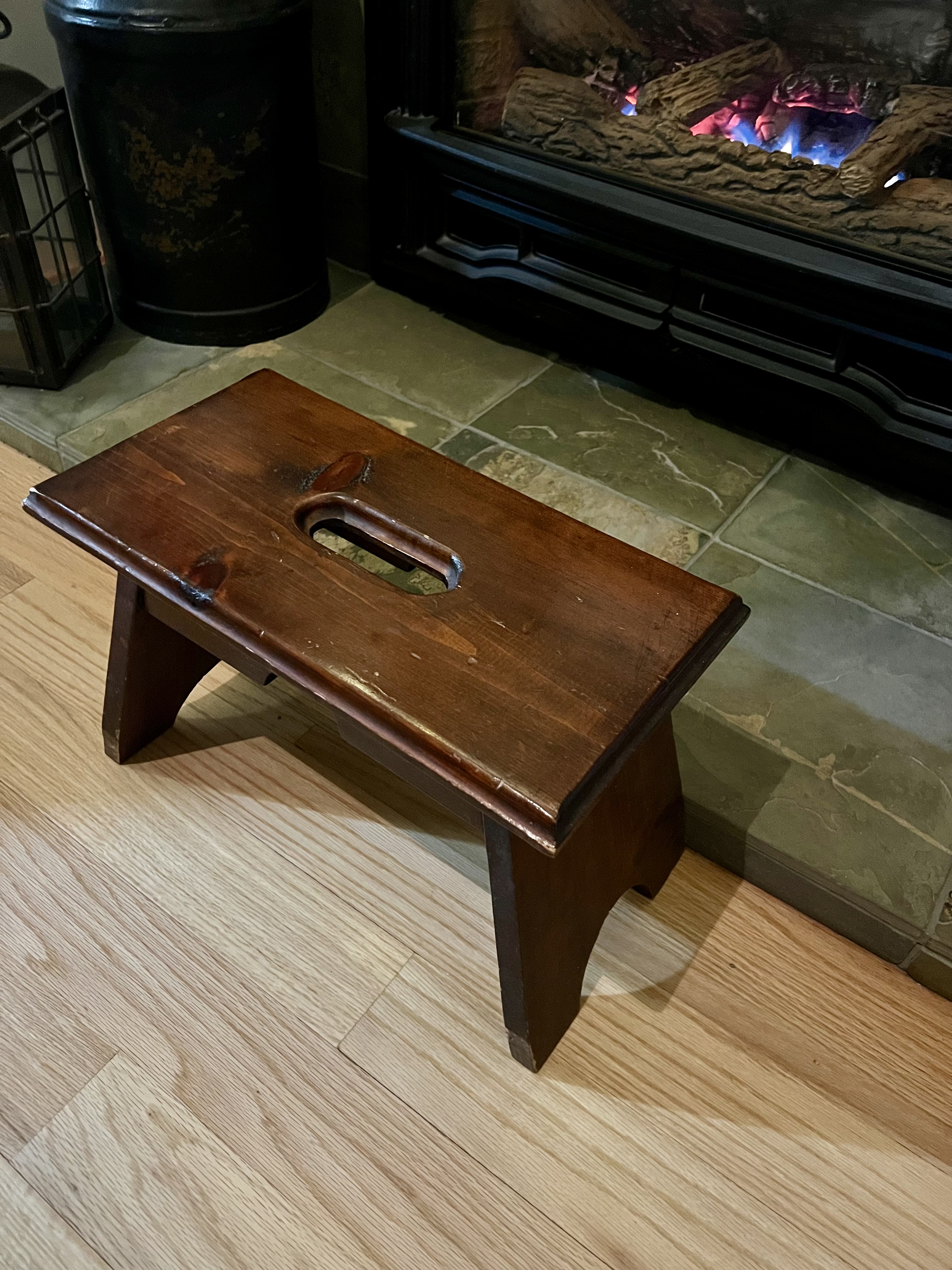 This has become my favorite winter spot, in front of the fireplace. I sit here probably hours a day (I hate to admit) doing whatever it is I do on my laptop (this blog, for example, at this very moment). My butt can get sore sitting on that little wooden stool, as it has a hole in the seat, designed, I think, to function as a handle. It’s a very hard and irregular surface. Matt claims to have made this stool in high school wood shop, nearly half a century ago (Note: he actually made it in junior high in Mr. Riopelle’s wood shop class, I am so corrected). I scooped it up in the process of emptying mom’s house back in 2017. I’d always admired it. And I got that tiny table from Aunt Ellie’s house in 2019, same home-emptying process, this time after Aunt Ellie had died. Two of my most treasured (if funky) pieces of furniture (“furniture”).