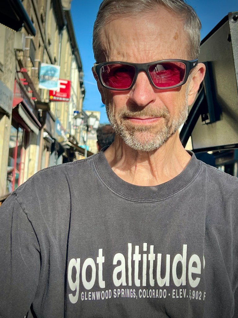 Something tells me Jim will opt out of this one…taken as we ate dinner this summer at an outdoor restaurant in Bayeux, France. He looks a little stern.