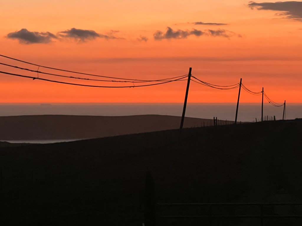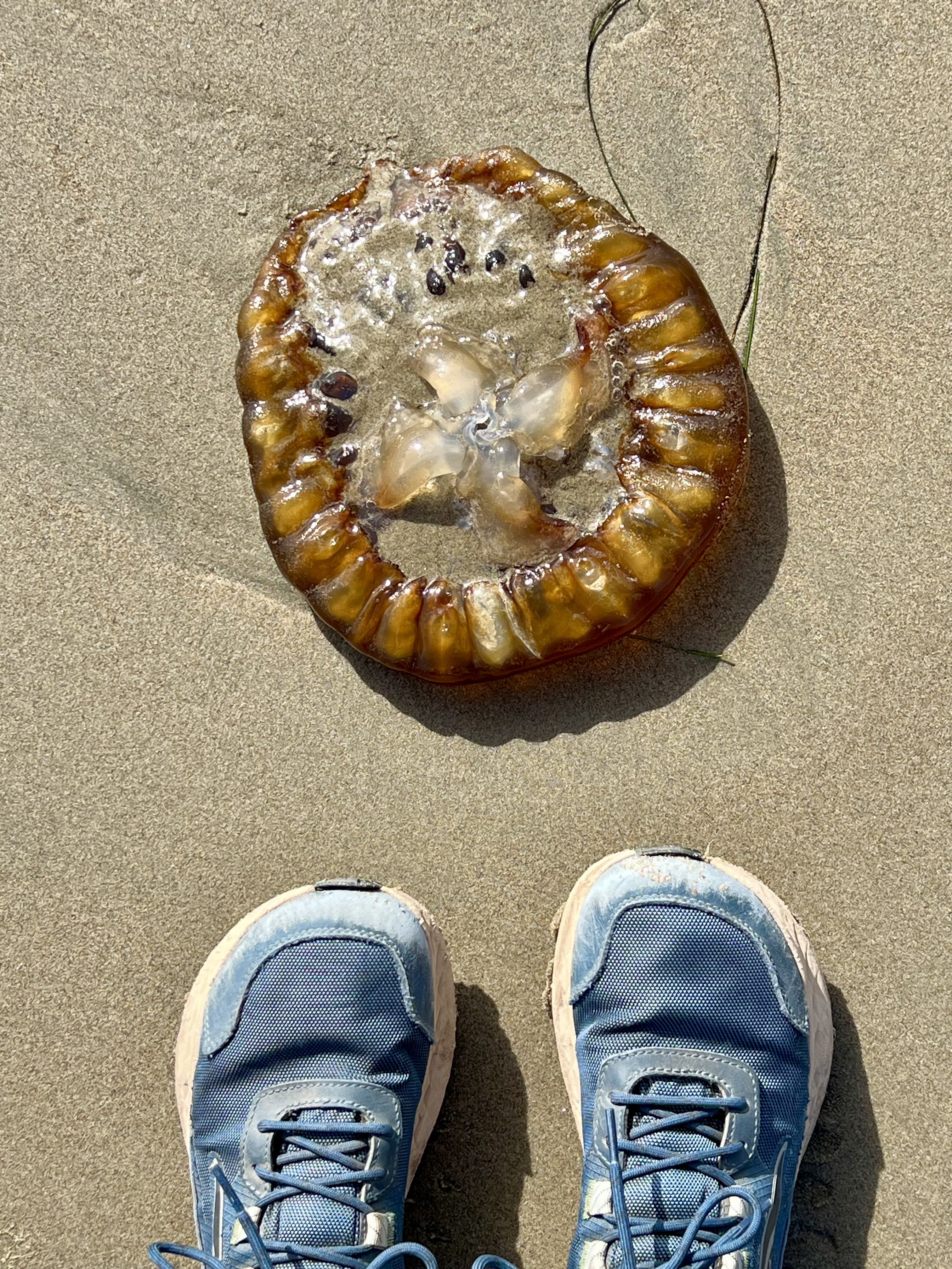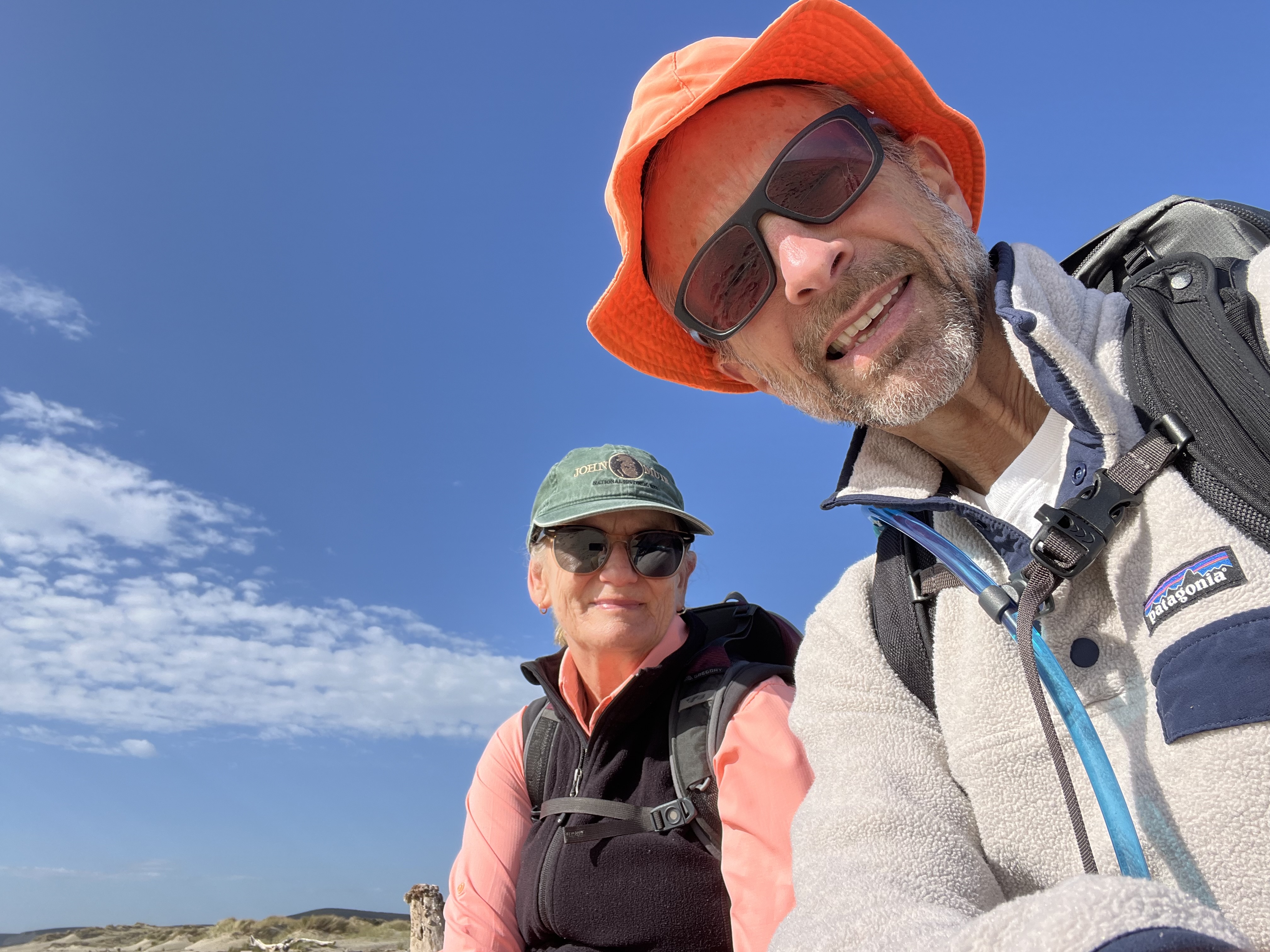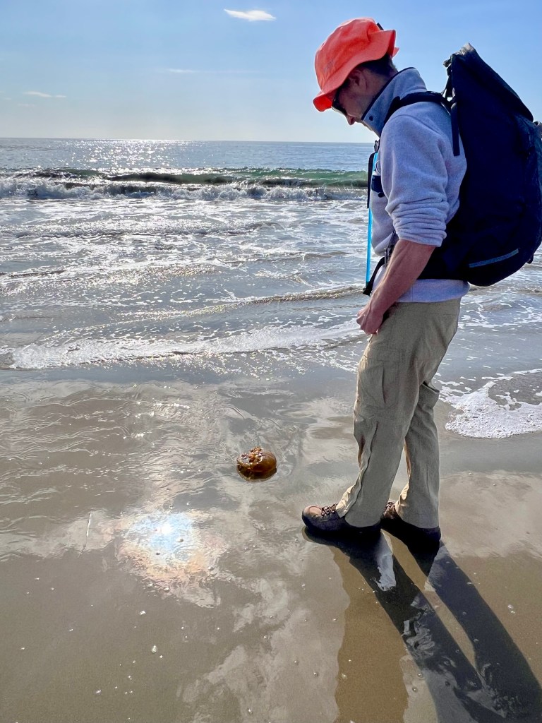 A leisurely arisal (apparently not a word); surprise Neccos (that Jim); our traditional Dillon breakfast; a breathtaking drive from Dillon to Pt. Reyes; a lovely trailhead conversation with a pair of doctors from Berkeley who offered us oranges; a level, 6-mile hike (the first, I might add, following the great 2024 knee blowout) from Muddy Hollow to Limantour Beach; an assortment of arty jellyfish; an early dinner at the Station House Cafe in Pt. Reyes Station (which included a celebratory 1/2 doz raw oysters, exceptional cornbread and a very memorable polenta/greens/toma cheese entree); a sated and happy drive home, arriving back to Dillon for an exquisite sunset. We capped the day with my come-from-behind squeaker of a Perquacky victory and a movie thriller that strained credulity (Carry-on).