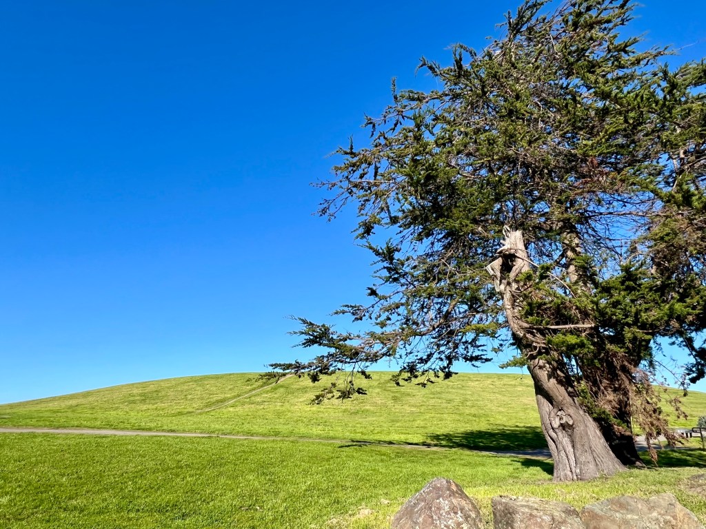 The birthday tradition continues, ever so enjoyingly: Breakfast at Rick and Anne’s in Berkeley, a walk [this year] at Cesar Chavez Park, down at the Marina.