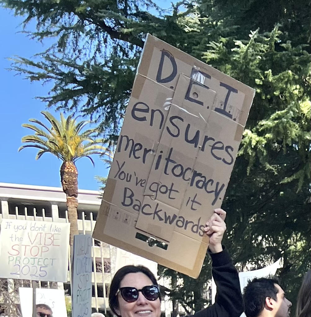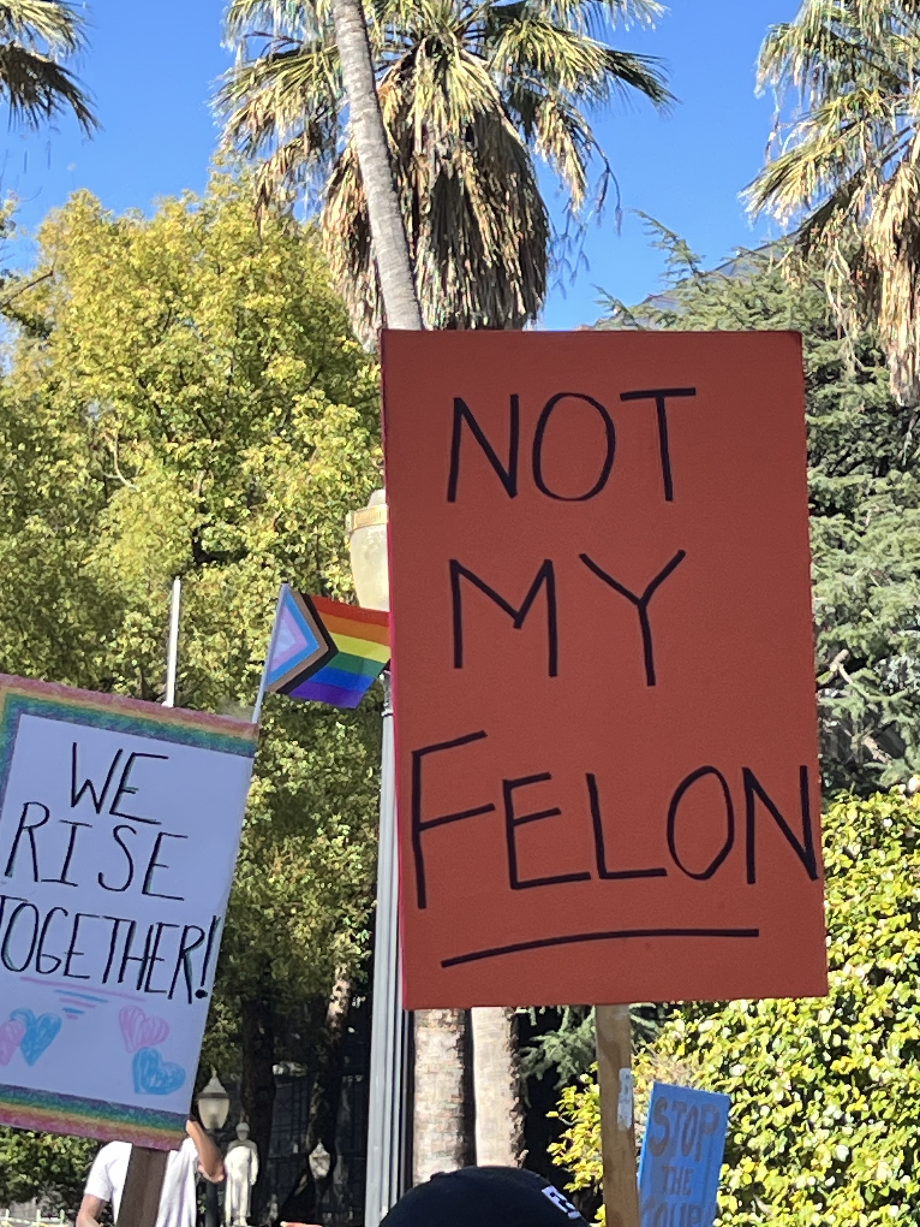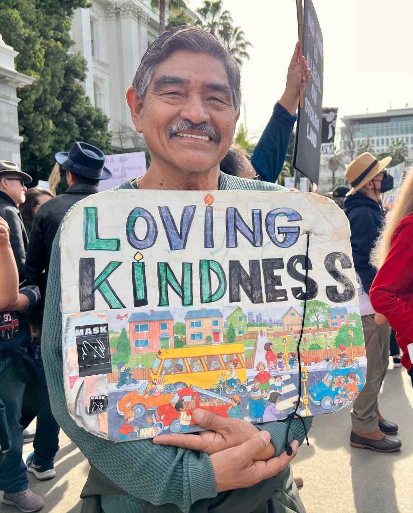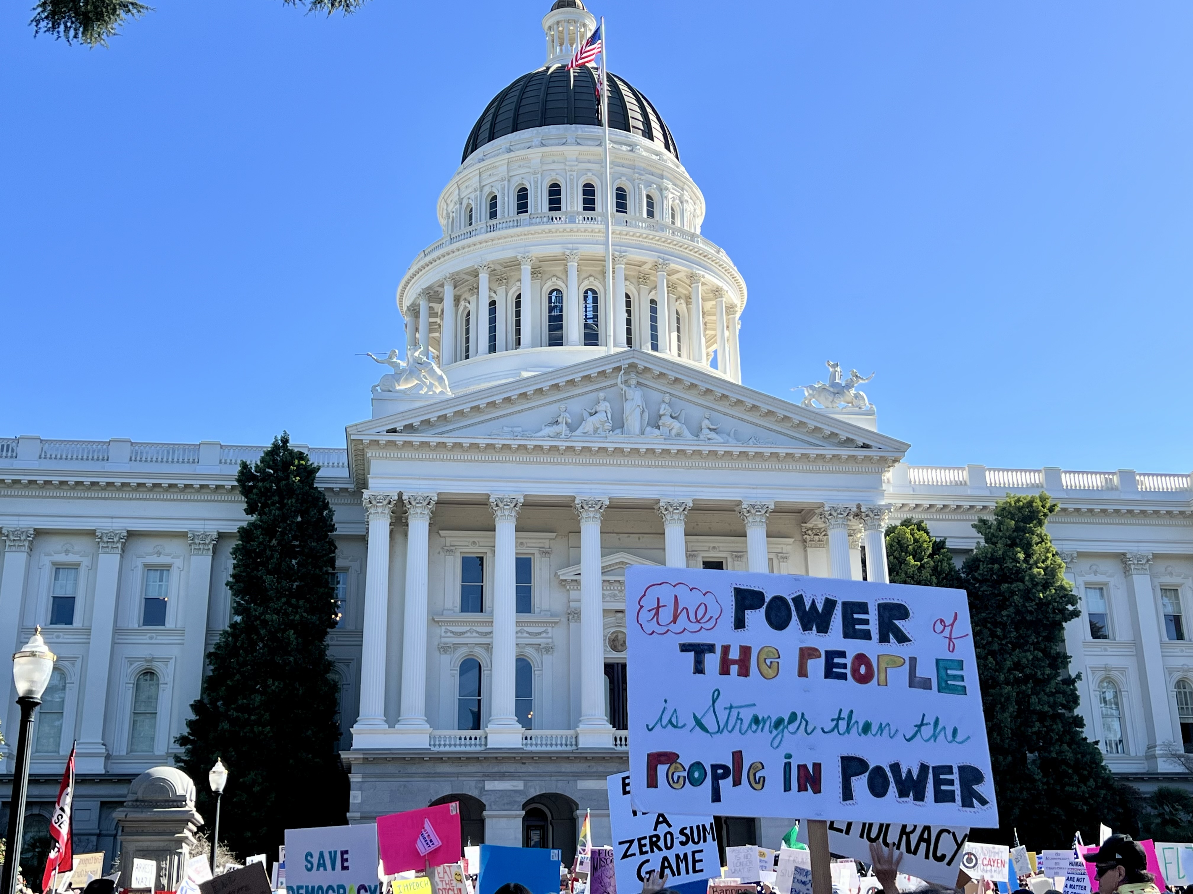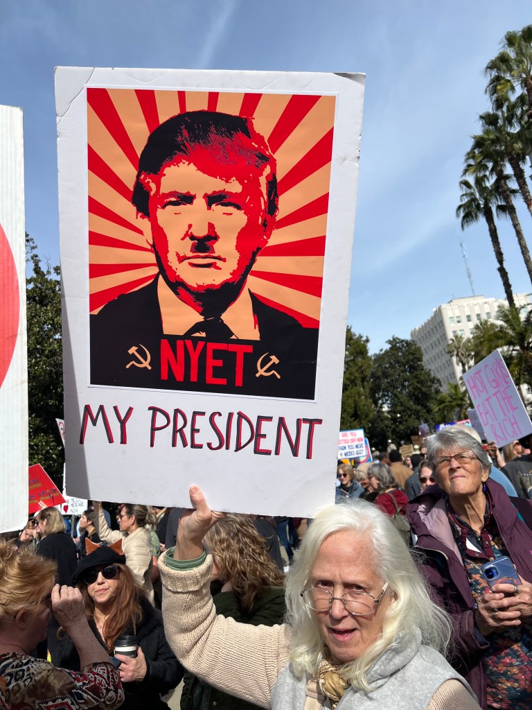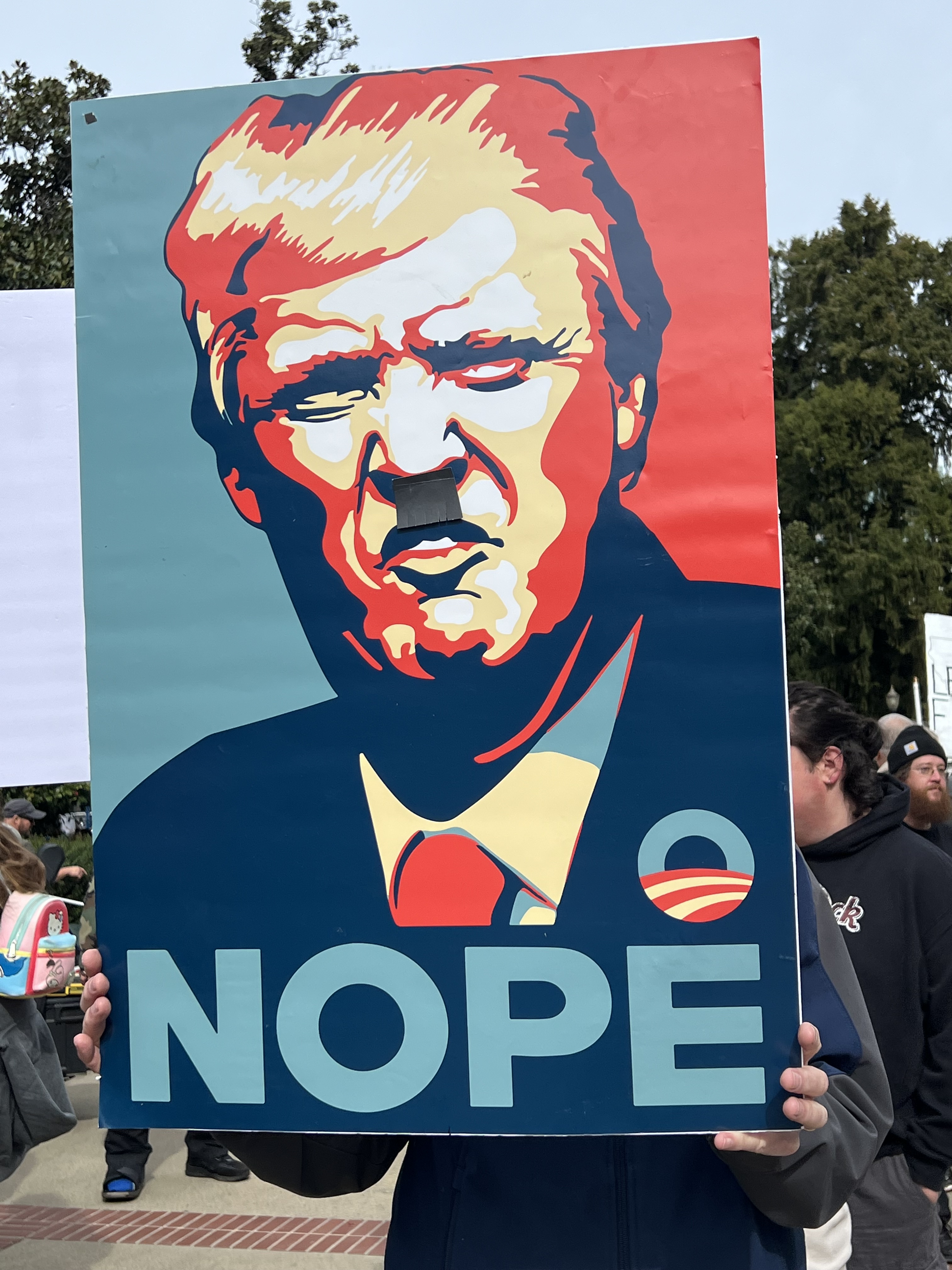 Steve M swung by at 9:30 and we repurposed some signs from marches-past. Then we picked Chris up and headed to the Federal Building at I and 5th in downtown Sac to meet (we hoped) with Senator Padilla’s field staff. We and about 300 others (!) … who, in a matter of days responded to an impromptu call-to-action from a woman in San Diego who stepped up to organize this meeting at the suggestion of Indivisible leaders in that crazy-inspiring Zoom call last Sunday night that drew 53,000 attendees!