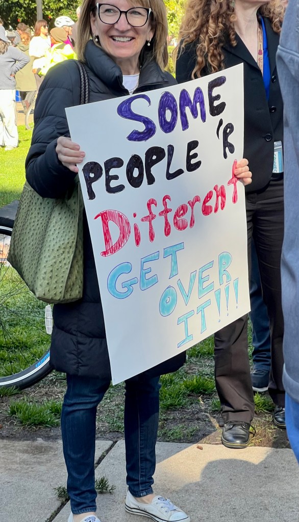 THEN.. most of us left the Federal Building and headed the 10-ish blocks to the Capitol for the a bigger rally. This was sponsored by some group who’d organized an action at all 50 state capitols. Turns out it was hugely successful. There were sizeable gatherings in all 50 states — some marches, some rallies — and they all got great press coverage.