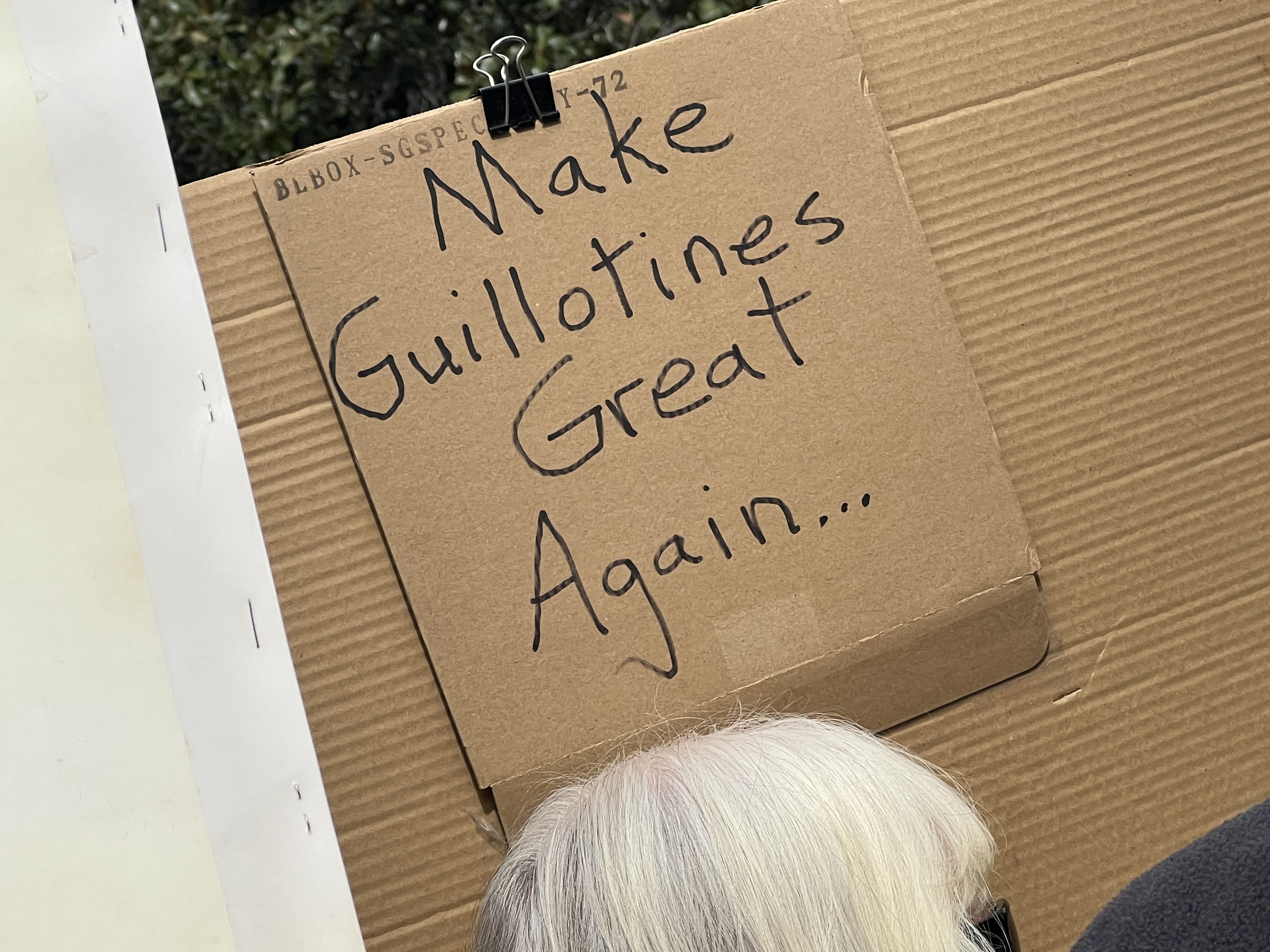 This time, Steve came over and we did Action Coffee, then Lyra arrived, then we picked up Chris, Spot Heroed a great parking place in the Cathedral lot at J and 11th, and a short walk to the Capitol put us in the thick of it.