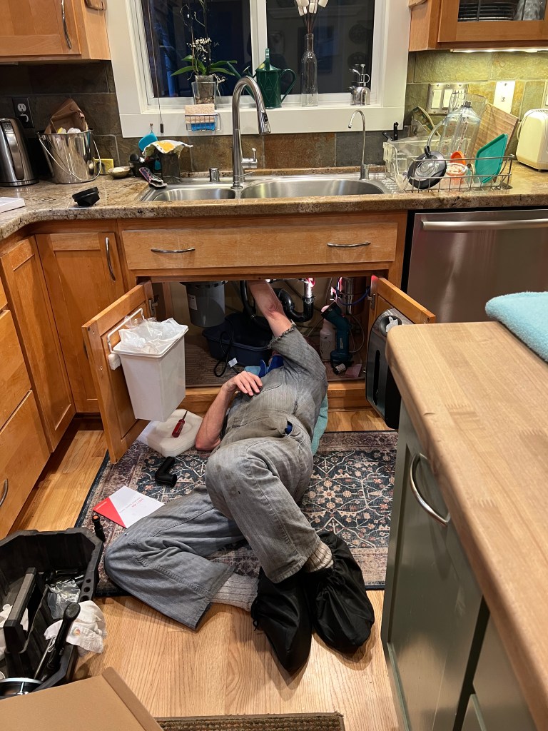 While the game was going on, Jim was fixing our garbage disposal which broke down (after 20 years) on Christmas Eve.