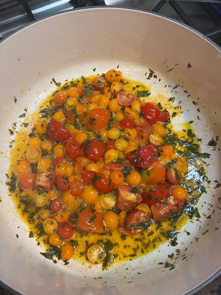 To this …. a Jim summer special of toms, basil, olive oil, garlic, s/p…
